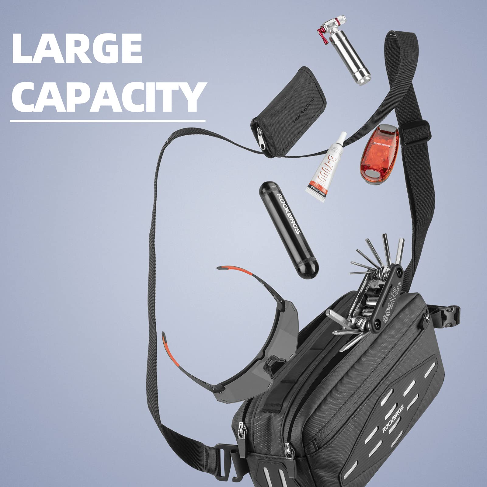 ROCKBROS multifunctional bicycle bag: equipped with 3 straps and 1 shoulder strap. Three straps with quick release buckles make it easy to attach the bike bag to the bicycle handlebar, frame or under bike seat. You can use it as a shoulder bag/frame bag/shoulder bag/handbag/belt bag as needed.