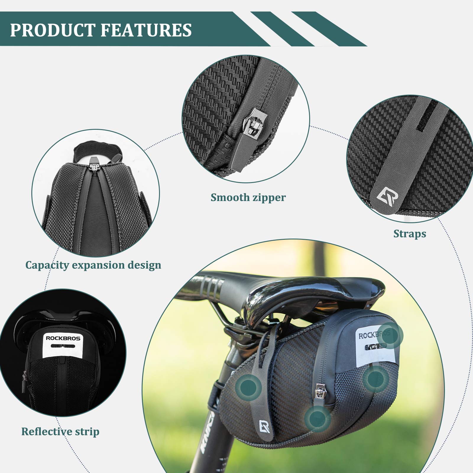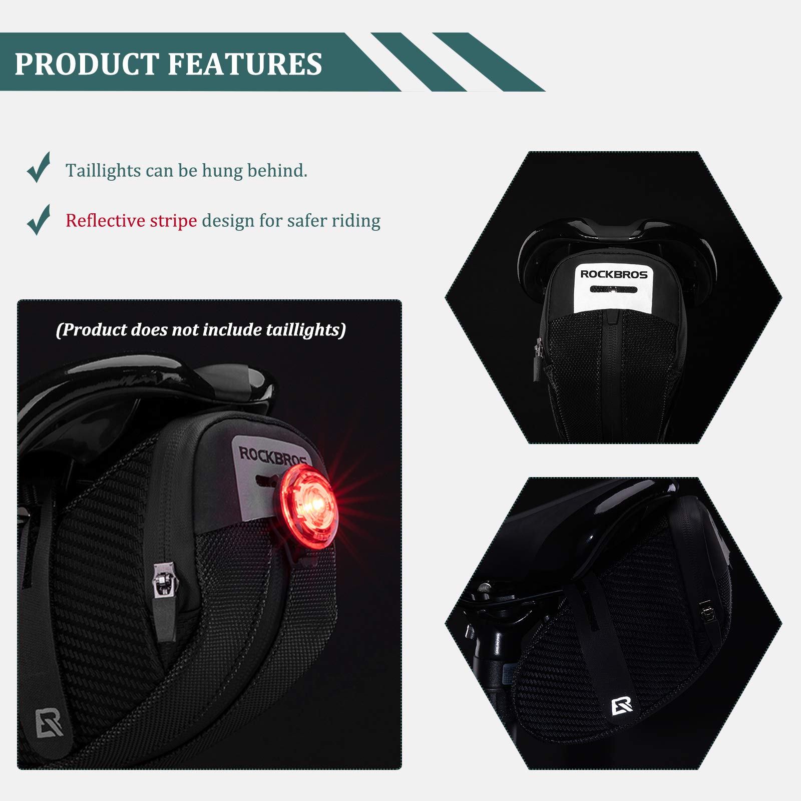 ROCKBROS Saddle Bag for Bicycle, Bicycle Bag Saddle for MTB Road Bike, Tool Bag with Rear Light Holder Bicycle Accessories